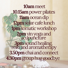 This day retreat is designed to nourish you from the inside out. A chance to re-energise, reconnect and recalibrate the bodymind. Starting the day off strong, we kick off with a signature Bella Mae mat pilates class. Suitable for all levels, but expect to sculpt, and possibly sweat. Keeping up with the good vibes, we stroll to Coogee Beach, minutes by foot, for some vitamin D and ocean therapy. Our friends and neighbours at Solar Cafe will fuel us with their delicious food. With satisfied bellies, Alanna will guide you through a somatic workshop, exploring what is happening below your conscious awareness: tapping into your felt sense. Think gentle movement, guided meditation, journaling and reflection. We then sink into a grounding yin yoga practice with Bella, accompanied by Allanah offering pins. Acupuncture compliments the yin practice by directly stimulating the same meridians to balance qi and enhance the release of emotional and physical tension. Moving deeper into the interior landscape, you’ll enjoy a sound bath by Bella, and reiki and aromatherapy by Neus. As the soothing sounds vibrate through you, hands on touch and reiki, paired with essential oils, will guide your nervous system into a deep state of rest and restoration. We end the day with a hot cup of chai tea, and there’ll be a chance to casually connect with one another. A closing circle will seal the day, integrating bodymind and heart. We cannot wait for you to join us for this incredibly wholesome day at The Quiet House. Mats and props are provided. Please bring your water bottle, pen, journal, swimmers and towel. Be quick to book in! Spaces are limited.